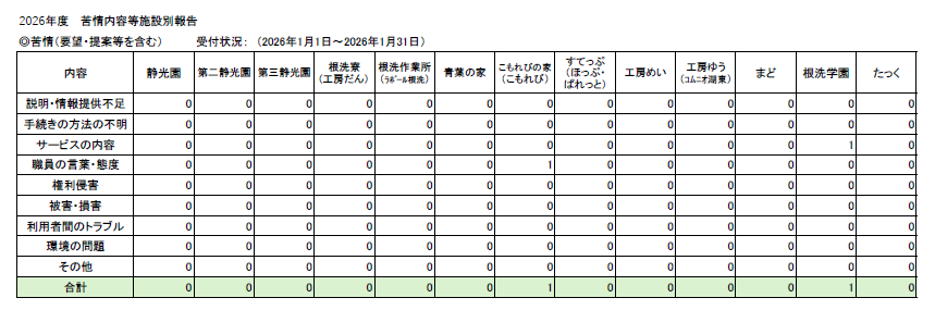 第二静光園 苦情・相談の報告 2025年10月