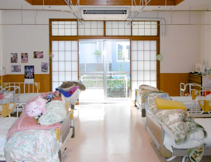 一部個室を設けている従来型多床室の特別養護老人ホームになります。定員の半分ずつ25名×2か所のグループケアを実施しています。開放的な空間で皆様の思う生活の実現を支援いたします。